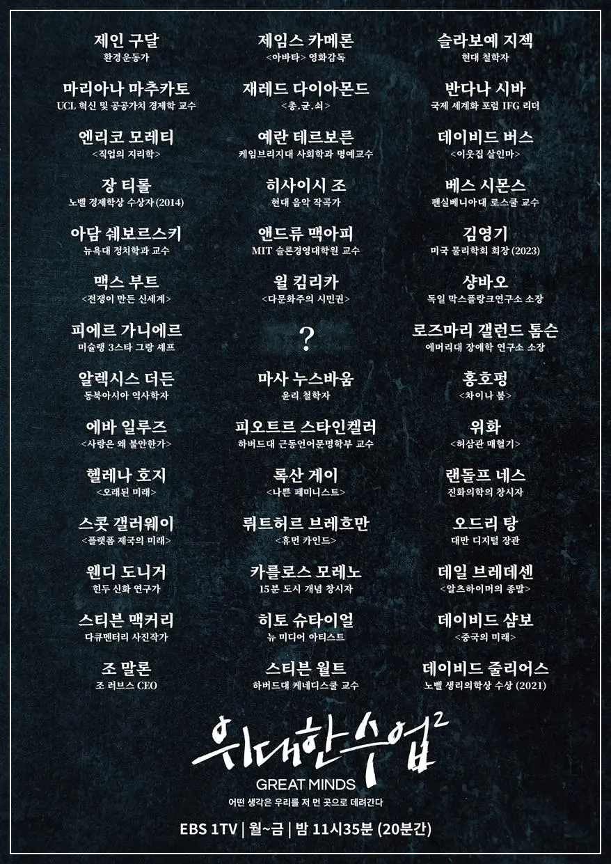 EBS 위대한 수업은 세계적인 학자들의 강연을 담은 프로그램으로,