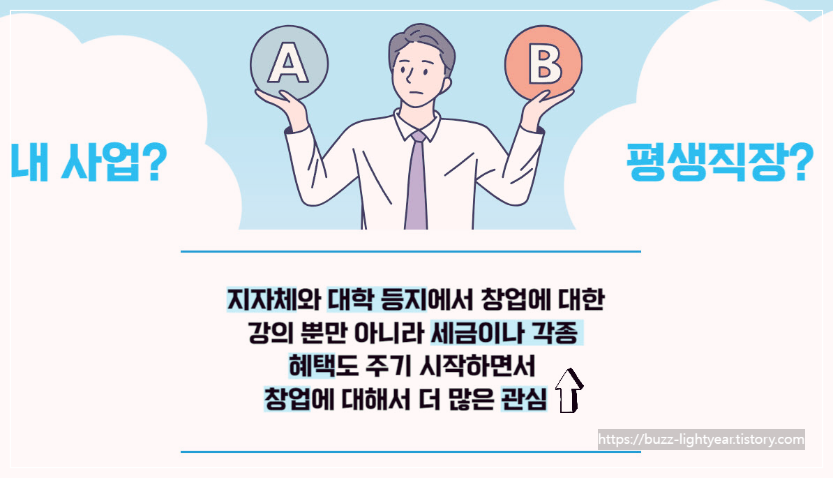 지자체와 대학 등지에서 창업에 대한 강의 뿐만 아니라 세금이나 각종 혜택도 주기 시작하면서 창업에 대해서 더 많은 관심이 늘어나기 시작했다.