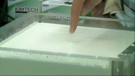 이 소재는 일반적인 폴리우레탄 패드와 같은 충격 흡수 소재와 달리, 충격이 가해지면 분자가 서로 충돌하여 빠르게 교환되어 에너지를 흡수합니다.