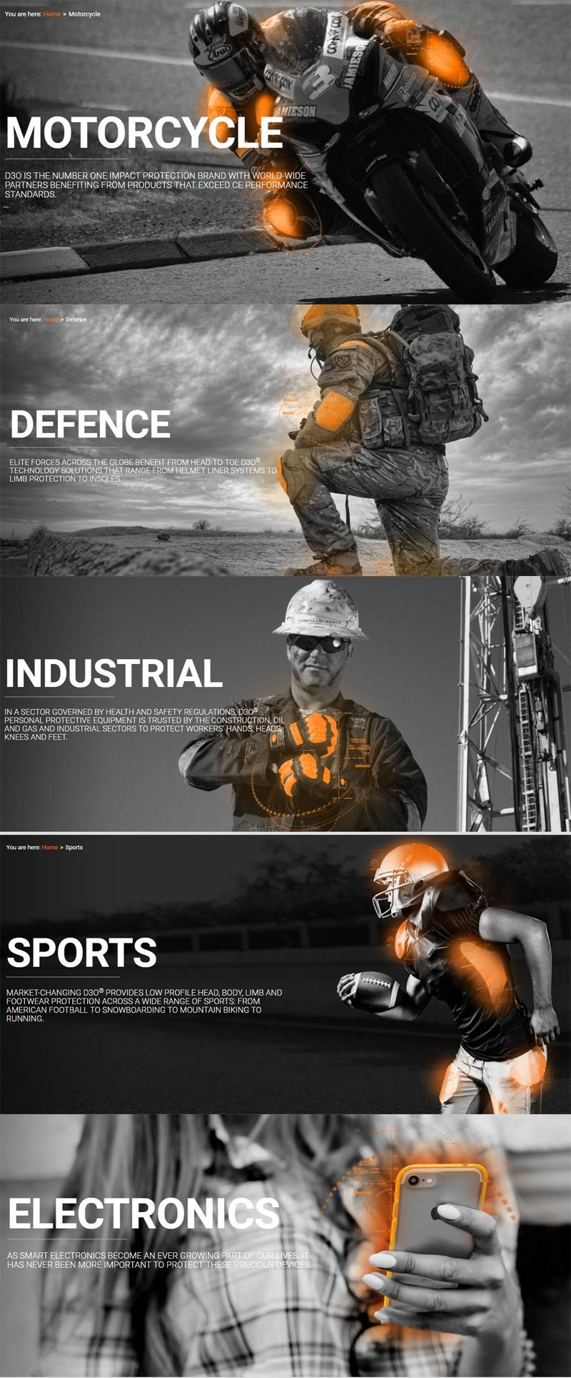 D3O®는 안전장비, 스포츠 장비, 의류, 신발 등 다양한 분야에서 사용됩니다.