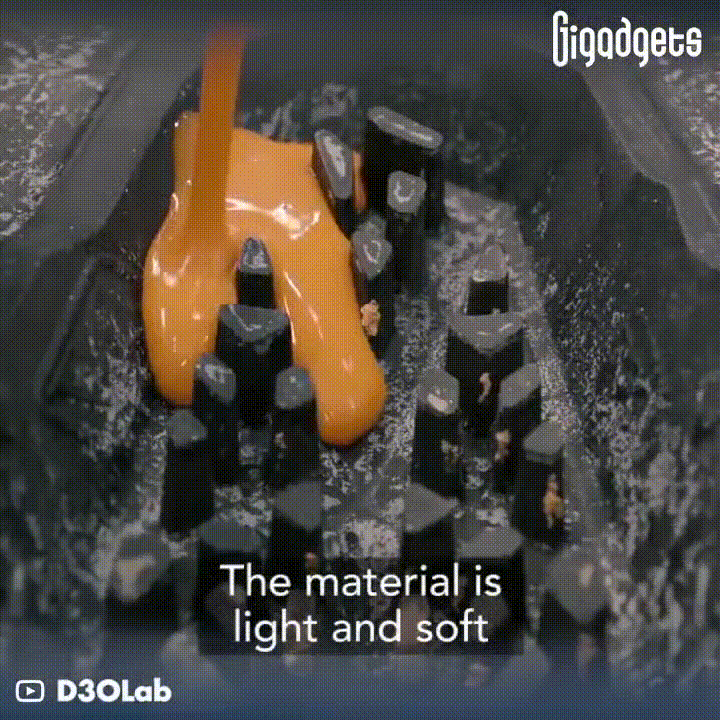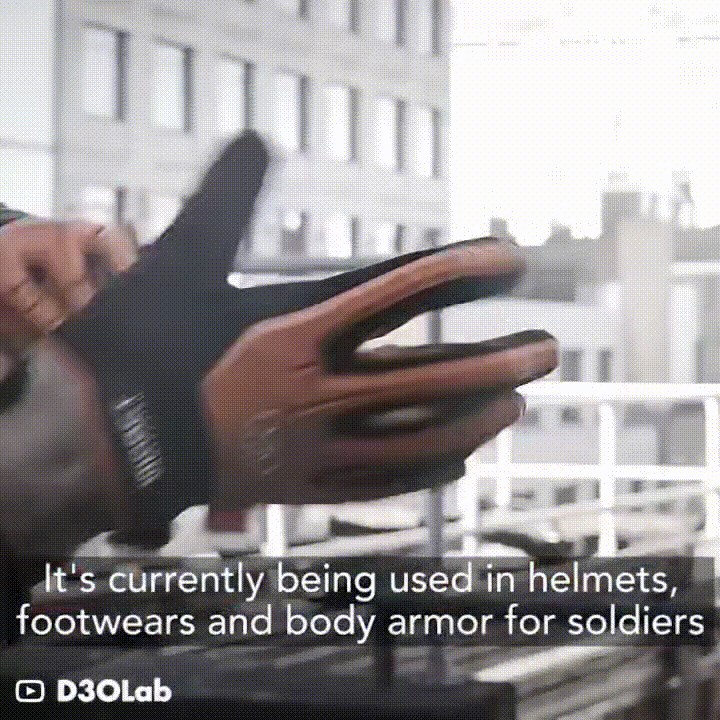 D3O®는 충격 흡수 소재로, 안전장비, 스포츠 장비, 의류, 신발 등 다양한 분야에서 사용되고 있습니다.