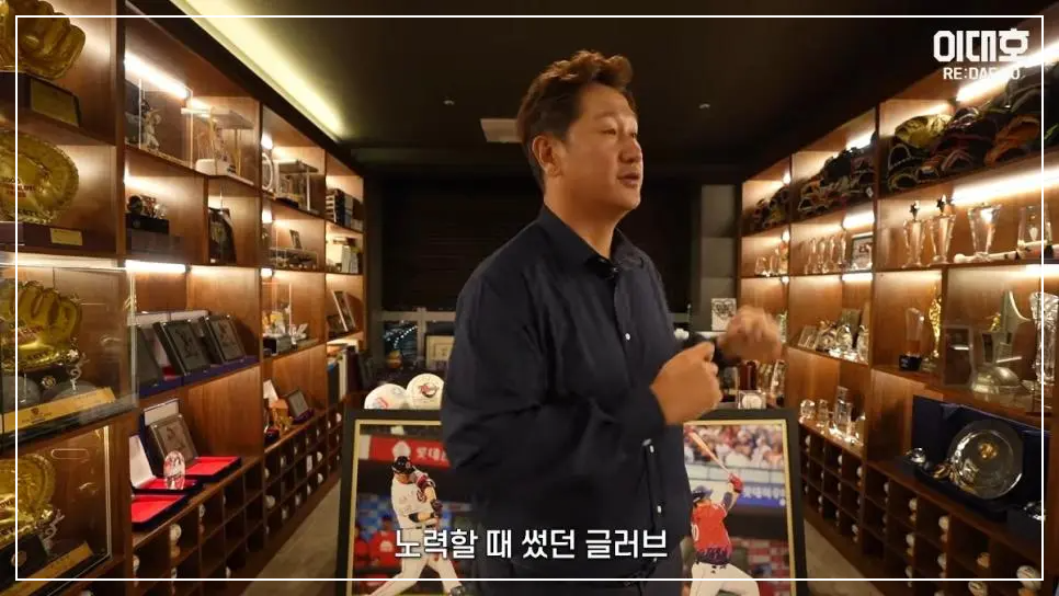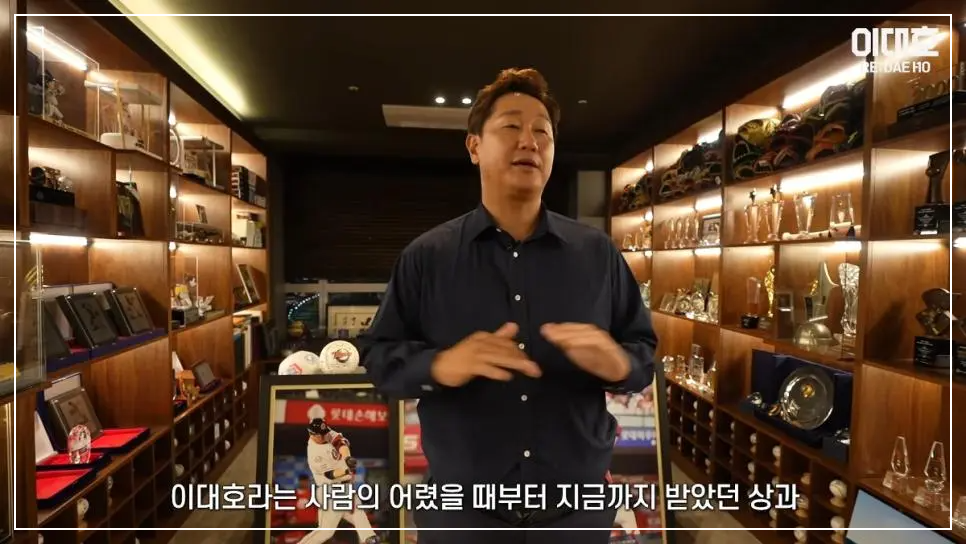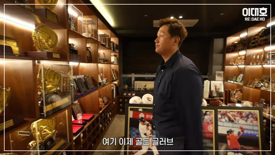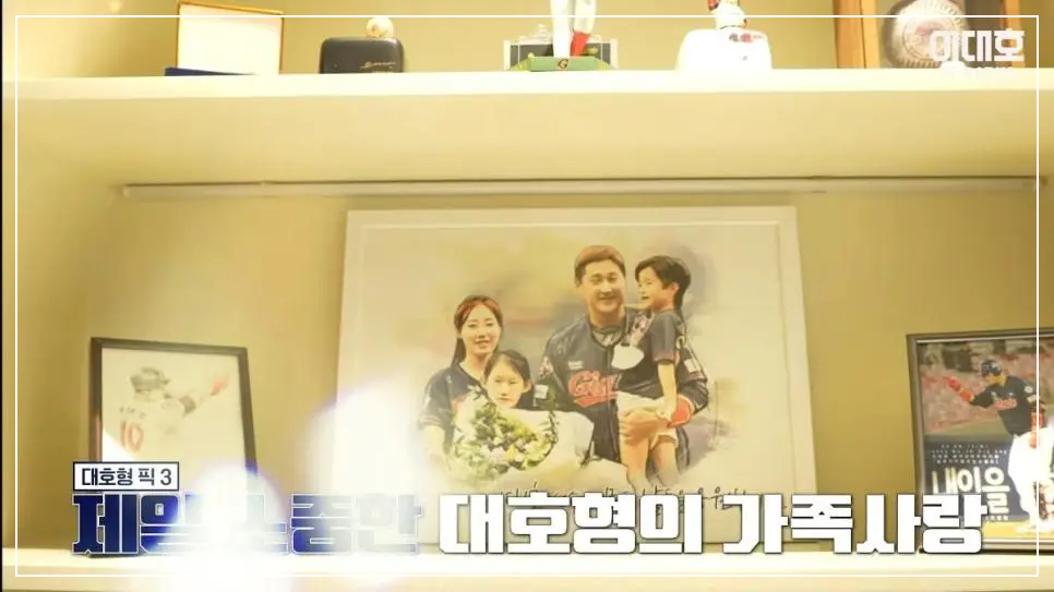 이대호 선수는 이 방을 통해 자신의 야구 경력과 가족에 대한 사랑을 보여줍니다.