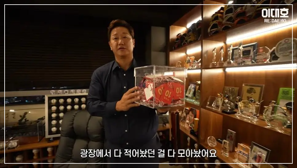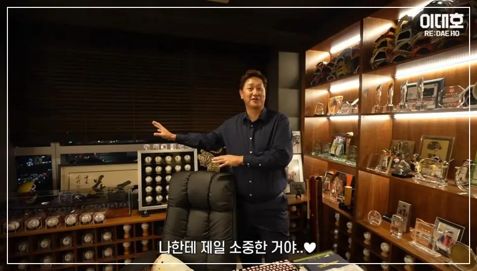 이대호 선수가 가장 아끼는 방은 '보물방’이라고 불리며, 그곳에는 이대호 선수의 모든 것이 담겨 있습니다.