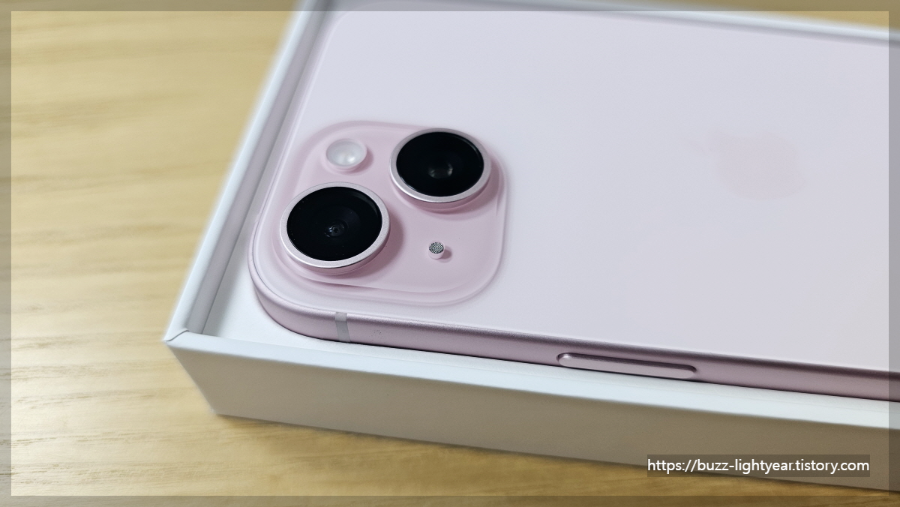 정말 티끌하나 없은 새상품 그대로의 아이폰15의 모습이다.